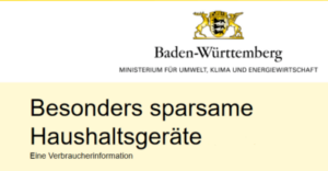 Auf der Seite des Umweltministeriums des Landes BW steht eine Liste mit besonders sparsamen Haushaltsgeräten.