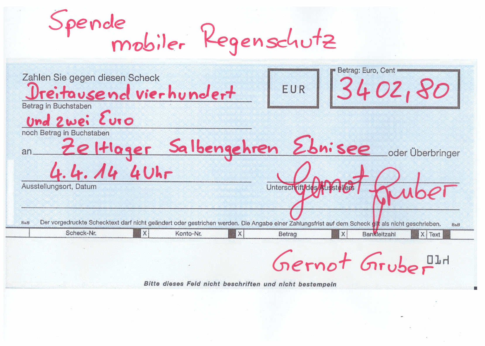Gernot Gruber spendet 3.400 Euro für das Ebniseezeltager