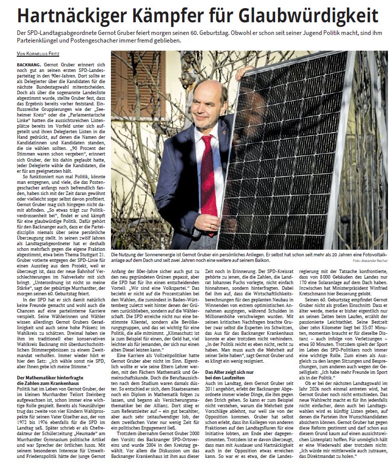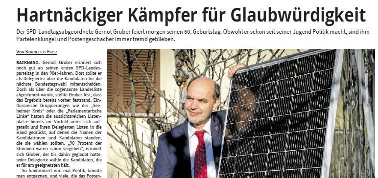 Porträts über Gernot Gruber aus der Presse. Den vollständigen Artikel können Sie mit Klick auf den Ausschnitt ansehen.